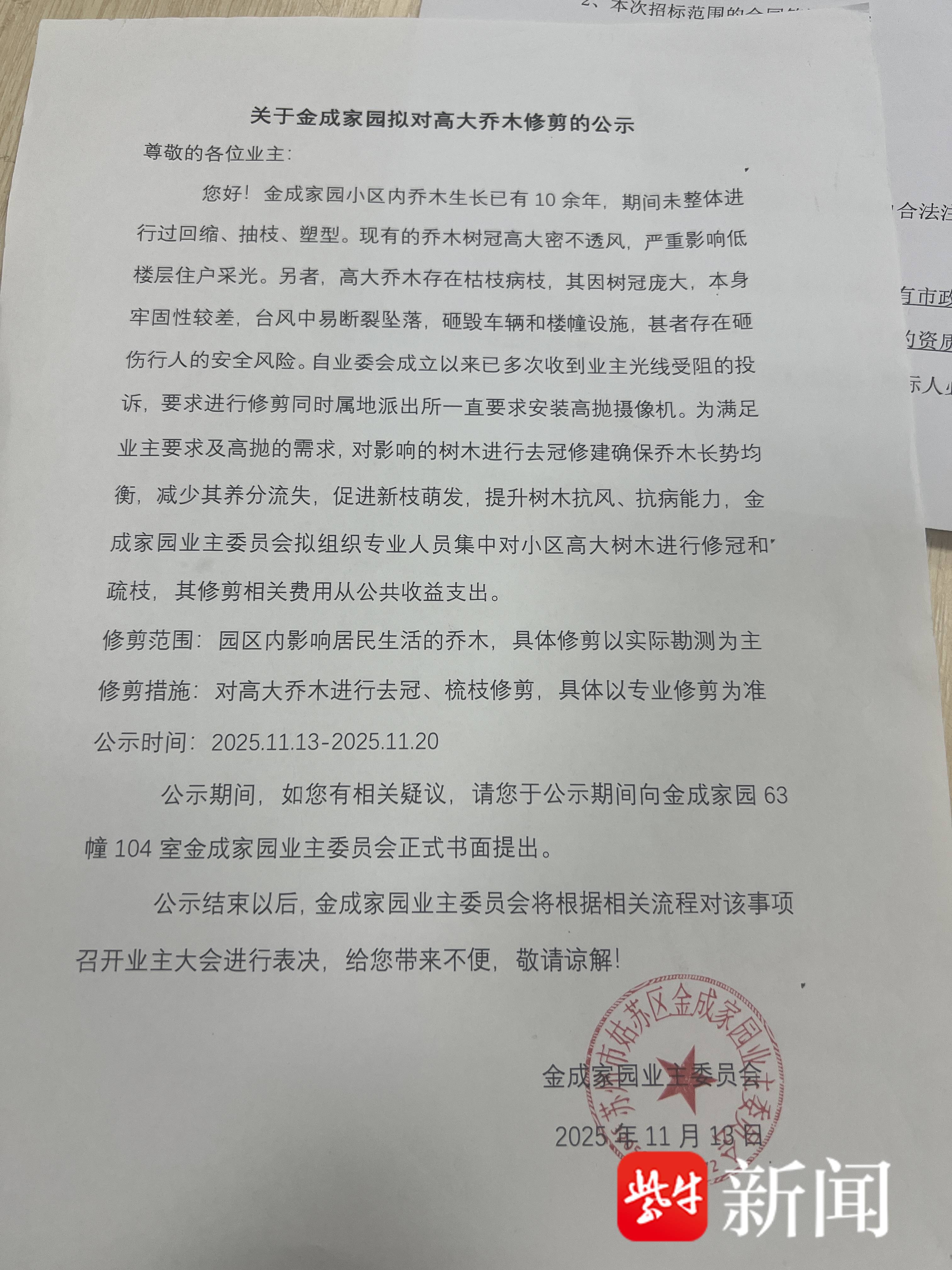 業(yè)委會(huì):居民聯(lián)名“請(qǐng)求修樹(shù)”,物業(yè)也認(rèn)為“迫在眉睫”